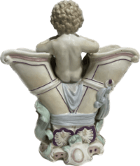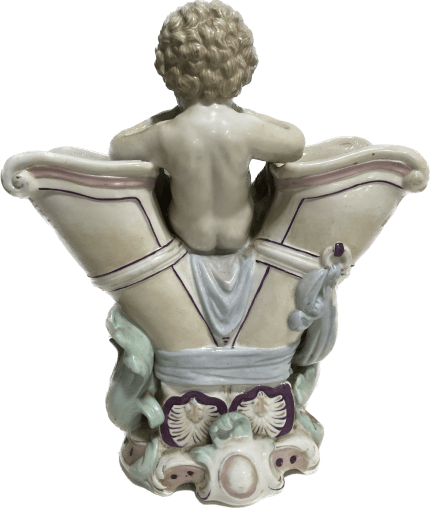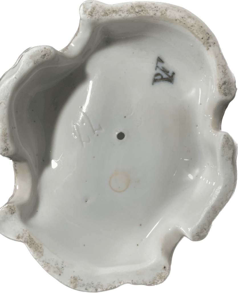Centro de decoración antiguo de cerámica y bronce con diseño intrincado y detallado.