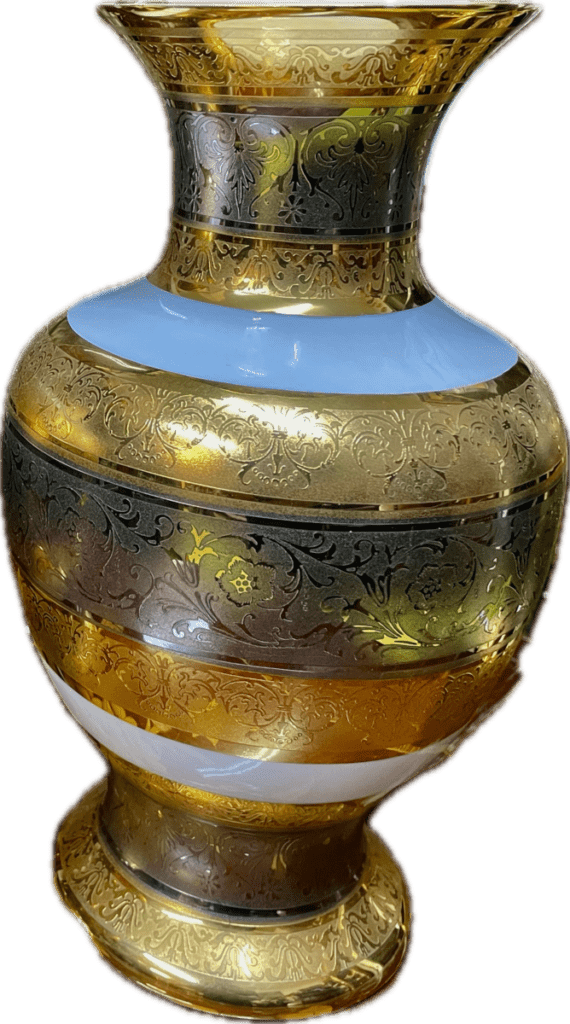 Jarrón antiguo de cerámica y bronce, diseño exquisito y elegante para decorar tu hogar con distinción.