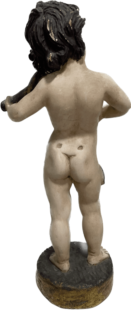 Talla excepcionalmente detallada del niño dios del siglo XVIII, hecha de madera tallada y pintada a mano con gran habilidad...